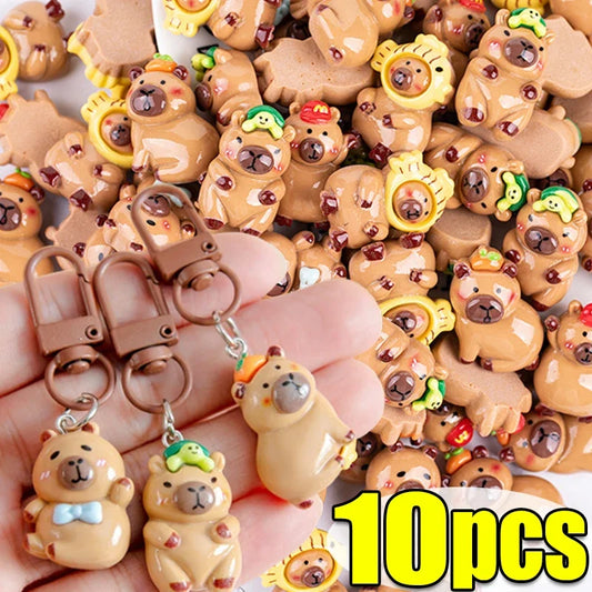1-10Pcs Lustige Cartoon Capybara Schlüsselanhänger Frauen Männer Charme Harz Glänzend Flatback Tier Anhänger Schlüsselring Schmuck, Die Entdeckungen