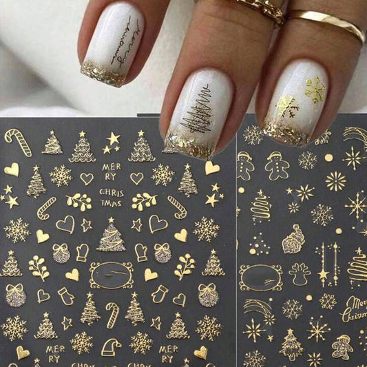 2 Stück Gold 3D Weihnachten Nagelfolie Aufkleber Funkelnde Schneeflocke Weihnachtsbaum Schneekugel Schneeflocke Nagelschieber Weihnachten Nagelaufkleber