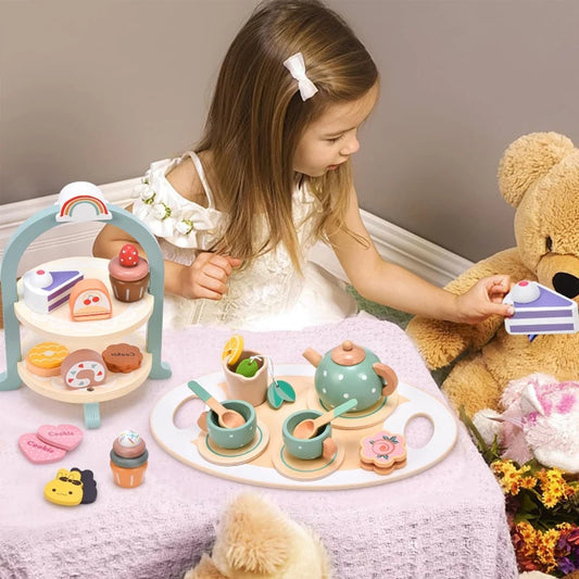 Mädchen Spielzeug Holz Nachmittag Tee Set kinder Spielzeug Küche Pretend Spielen Set Toaster Kaffeemaschine Eis Kinder Pädagogisches Spielzeug