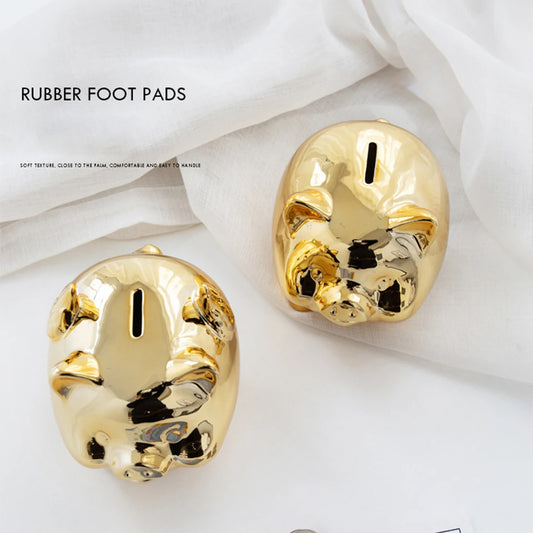 Sparschwein aus Keramik, goldenes Schweinchen, niedliches Münzsparschwein, Glücksschwein, Dekoration, kreative Heimtextilien, einfacher Zugang, Geldbanken, Neu