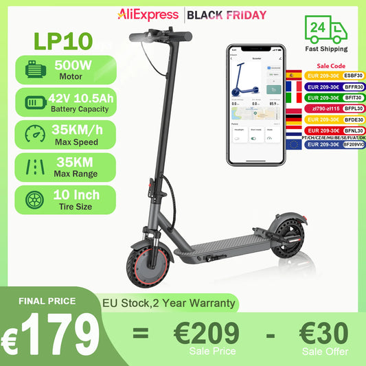 AOVOPRO LP10 500 W Elektroroller 42 V 10,5 Ah 35 km/h 35 km große Reichweite 10 Zoll mit Stoßdämpfung, intelligenter faltbarer EScooter