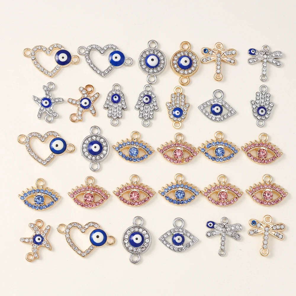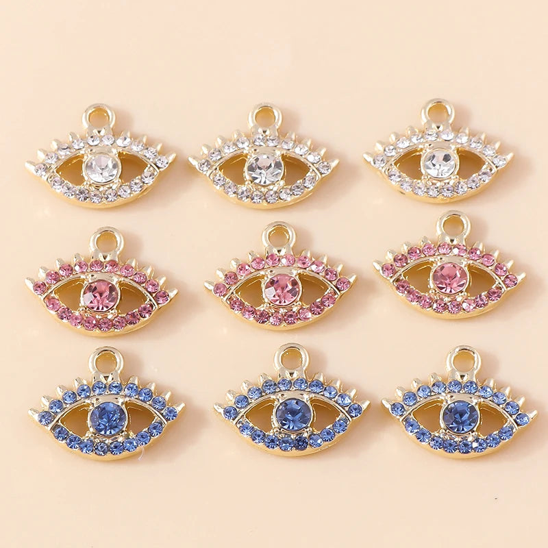 10 Stück Mixed Crystal Evil Eye Charms Türkische Lucky Blue Eye Charms Anhänger Anschlüsse für Armband Ohrringe Halskette DIY Schmuck