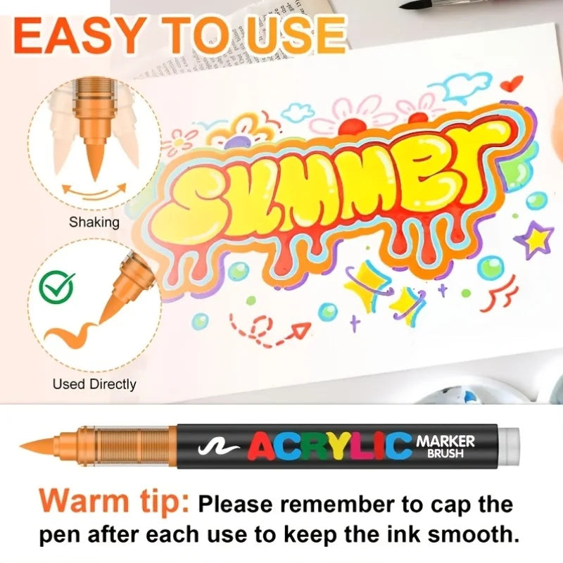 12-120 Farben Acrylfarben Stifte Marker Pinselspitze Farbmarker für Felsmalerei Holz Leinwand Stein Weihnachtsgeschenk DIY Handwerk