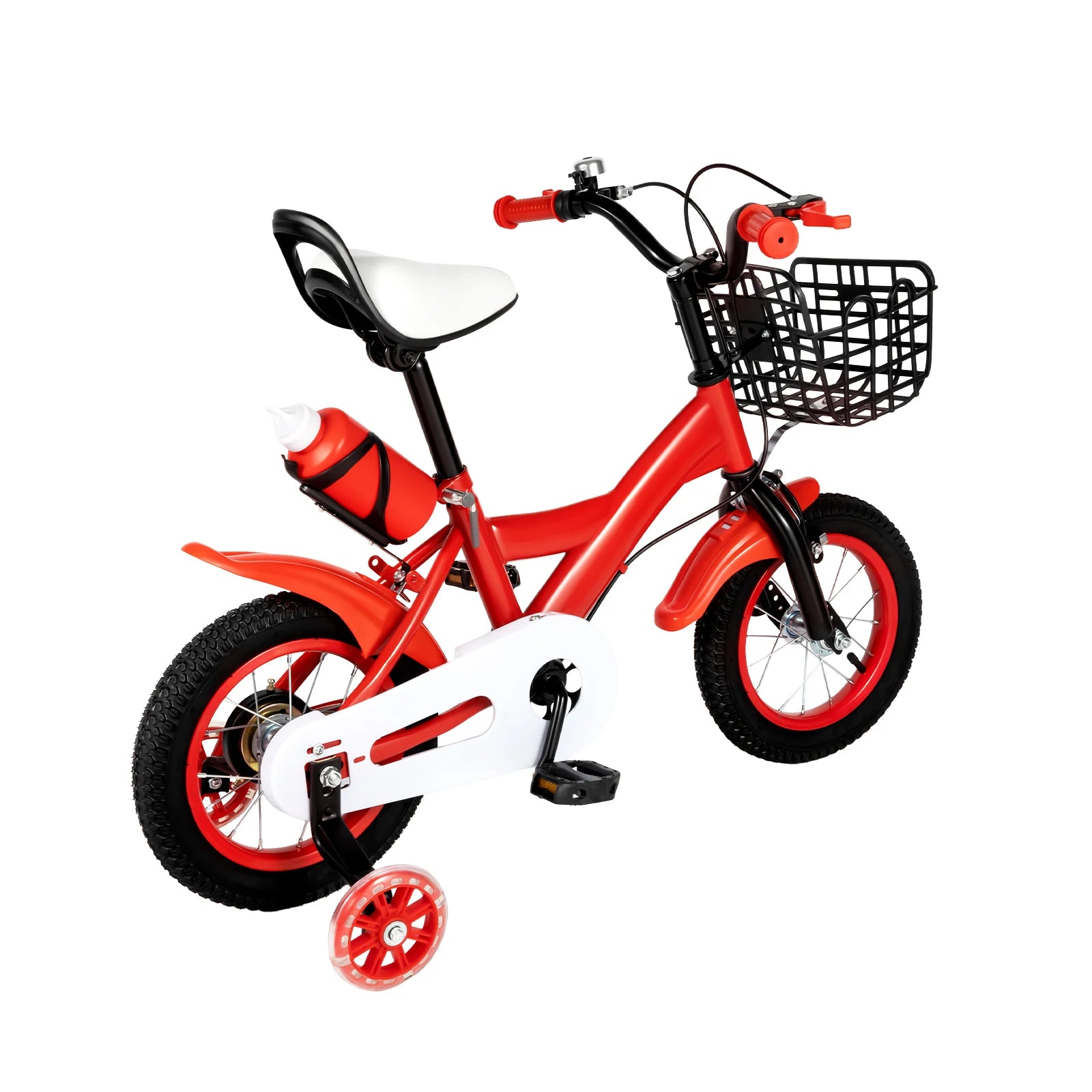12" rotes Fahrrad mit Stützrädern, verstellbarer Sitz und Lenker, Sicherheitsbremsen, blinkende Räder für Kinder von 2–4 Jahren