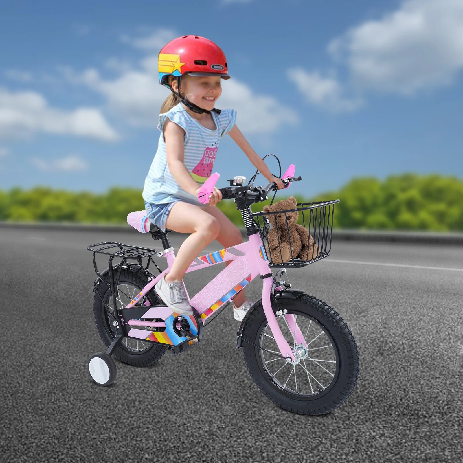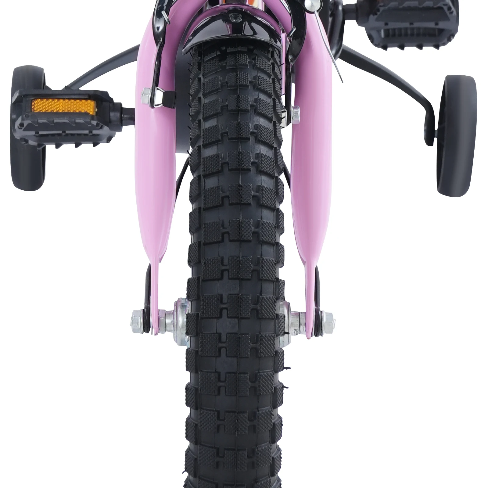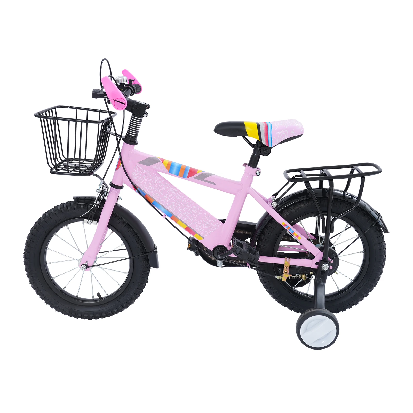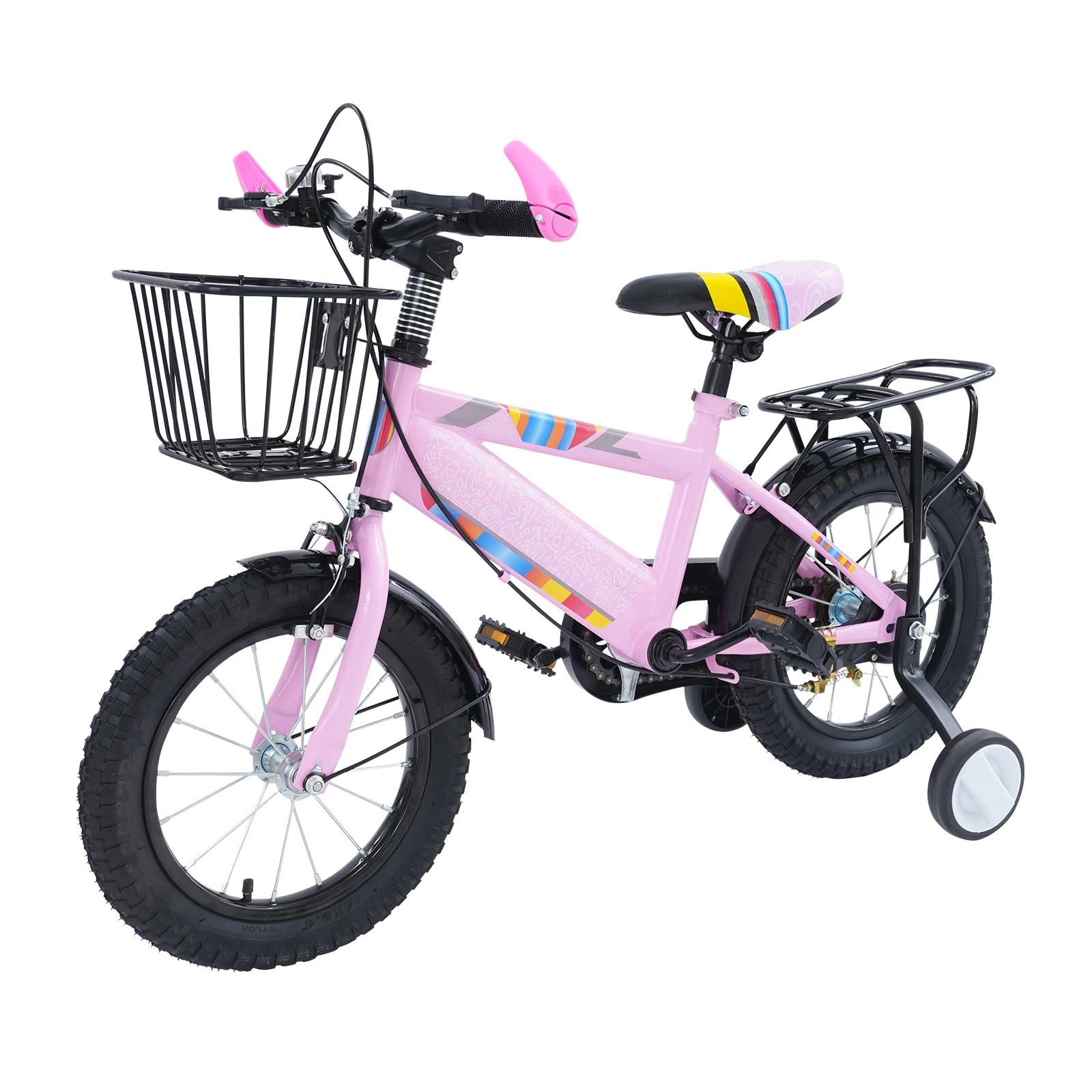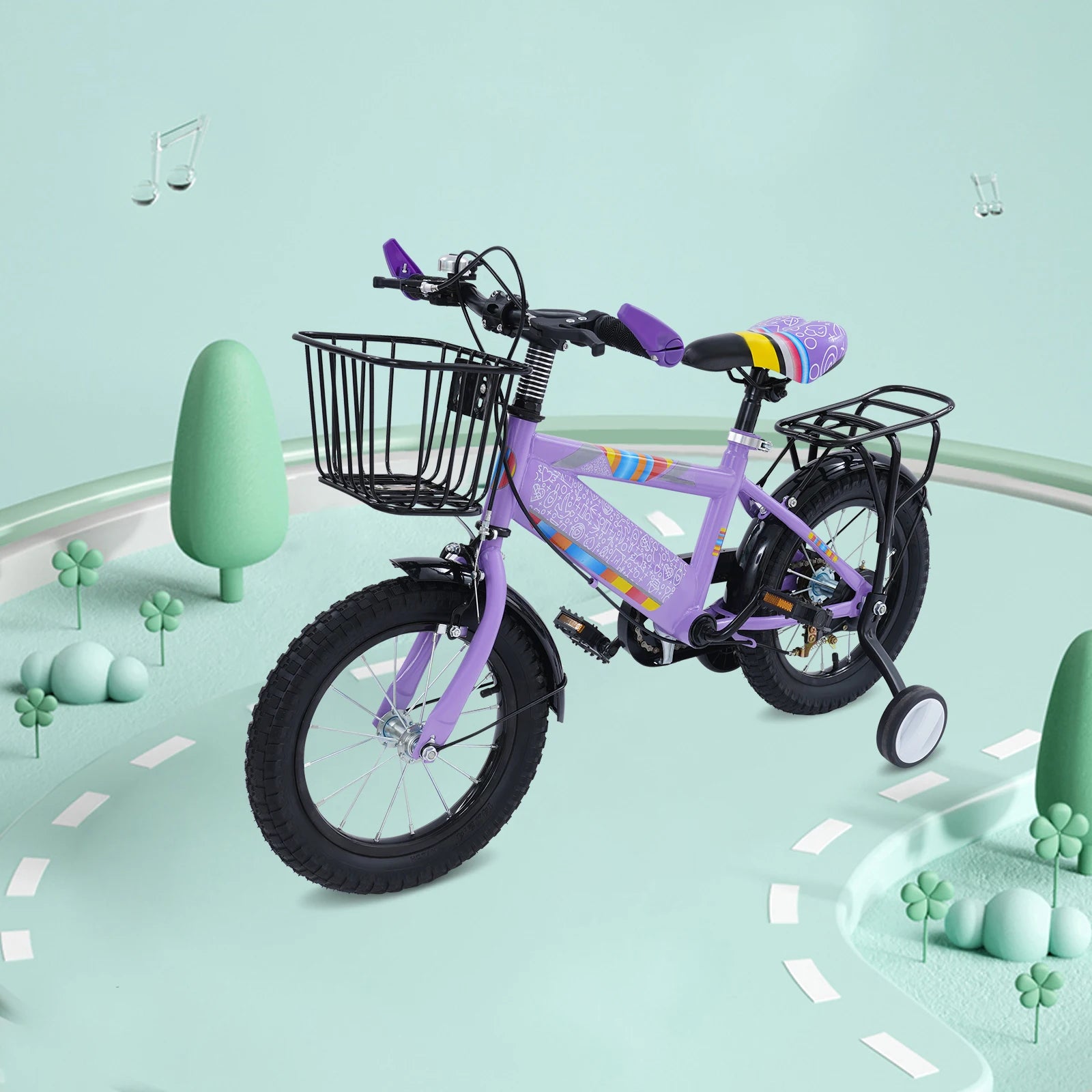 Hohe Sicherheit:Die breiten und stabilen Gummireifen sorgen für hervorragende Traktion auf verschiedenen Oberflächen und minimieren so das Risiko eines Ausrutschens.Darüber hinaus bietet die Einführung von Trainingsrädern zusätzliche Unterstützung für junge Fahrer, die noch ihr Gleichgewicht entwickeln, was die allgemeine Fahrsicherheit erheblich erhöht.Gleichzeitig verhindert die geschlossene Kettenschutzplatte, dass Ihr Kind die Kette berührt, um versehentliche Verletzungen zu vermeiden.