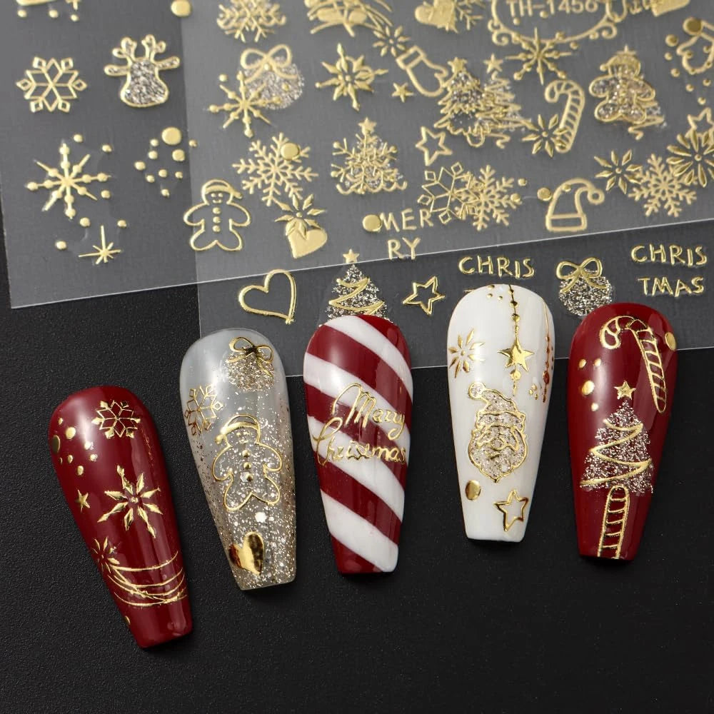 2 Stück Gold 3D Weihnachten Nagelfolie Aufkleber Funkelnde Schneeflocke Weihnachtsbaum Schneekugel Schneeflocke Nagelschieber Weihnachten Nagelaufkleber