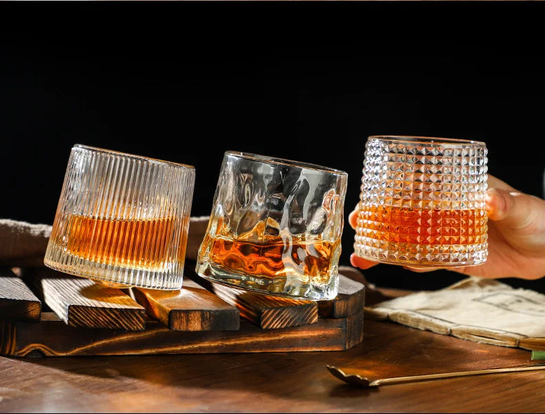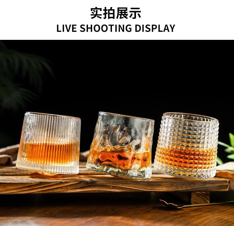200 ml Whiskygläser, Tasse, Neuheit, drehbar, altmodisches Weinglas mit Holzsockel für Saft, Tee, Bar, Trinkutensilien