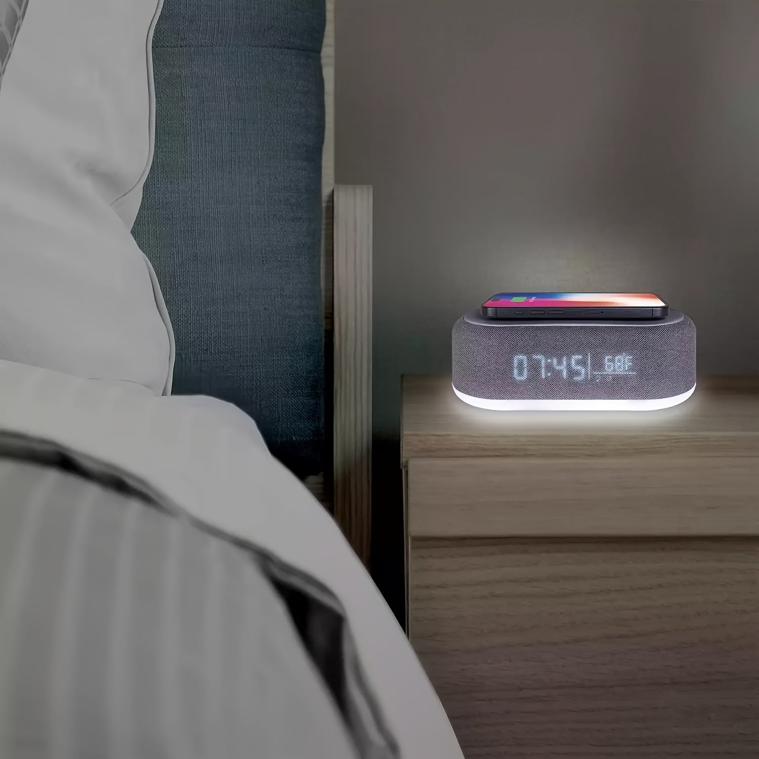 4in 1 Multifunction Wireless Charger Pad Stand LED Night Light Temperature Time Desktop Alarm Clock Mobile Phone Chargers Induction Fast Charging Dock Station Base for iPhone 16 15 14 13 12 for Galaxy S25 S24 S23 Bedroom Offi