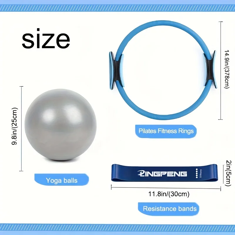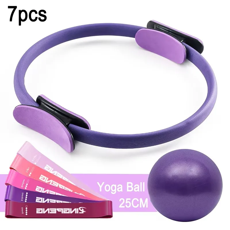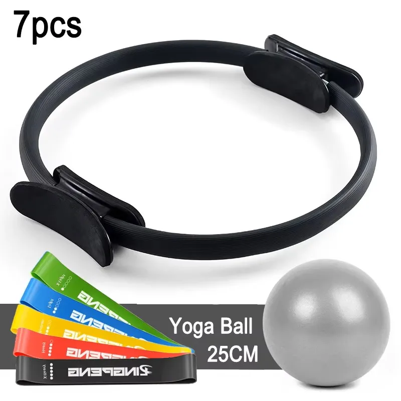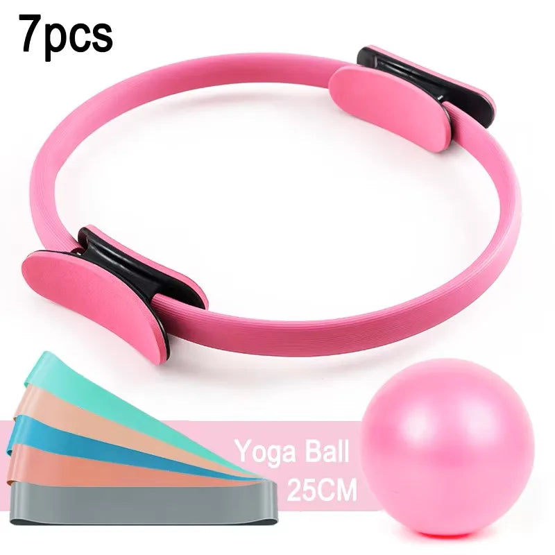 7-teiliges Pilates-Ring-Set, magischer Kreis, explosionsgeschützter Pilates-Miniball, hochelastisches Widerstandsband, Yoga-Weizenschlauchball
