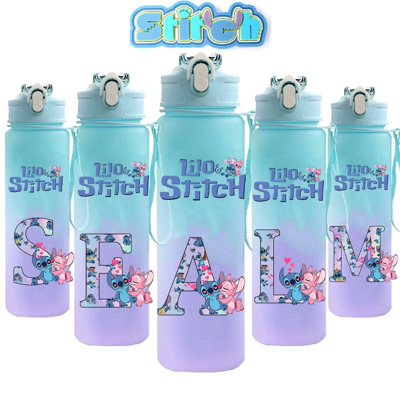 750 ml Lilo Stitch Brief A-Z Gedruckt Wasser Flasche Große Kapazität Trinken Tragbare Anime Outdoor Sport Wasser Tasse KINDER geschenk Gym