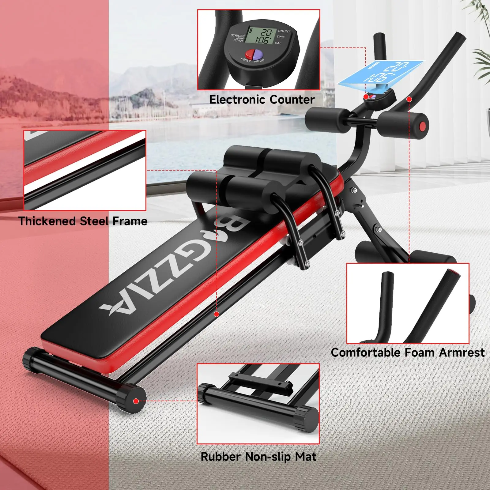 Thickened Steel Frame - Electronic Counter - Rubber Non-slip Mat - Comfortable Foam Armrest