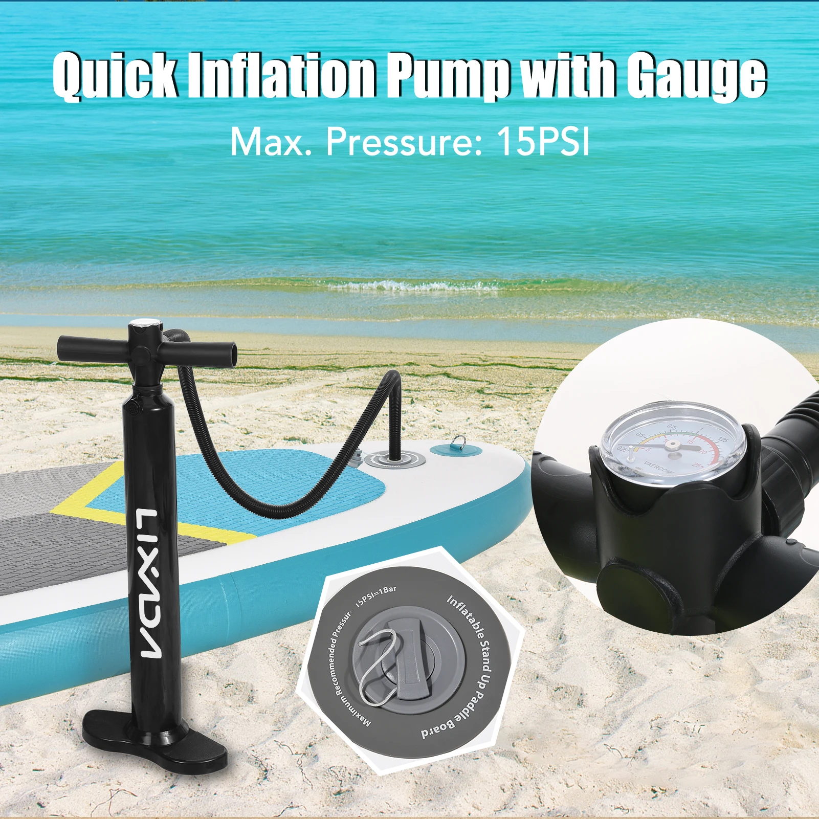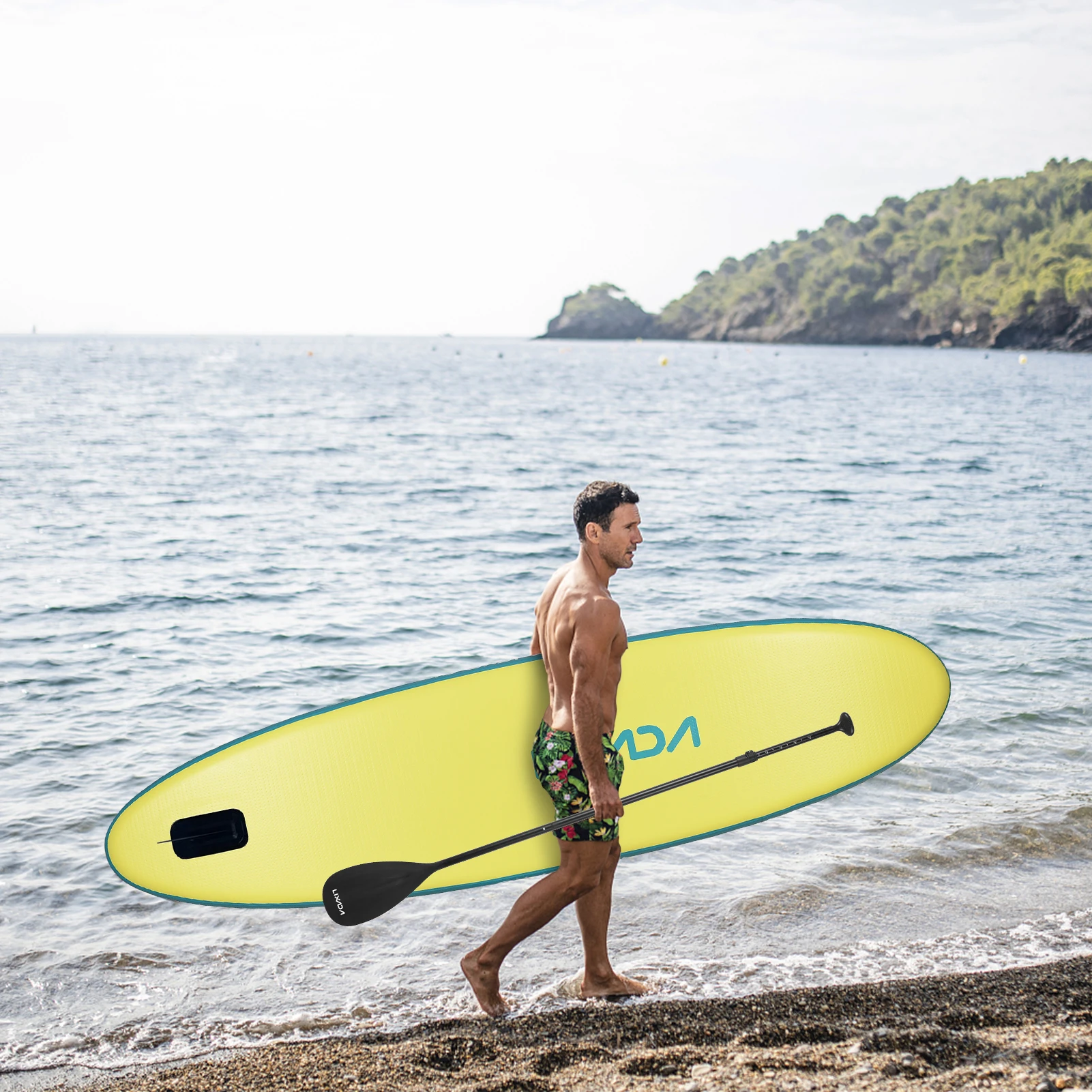 Wird mit unverzichtbarem Zubehör geliefert, darunter ein verstellbares Paddel, eine Surfflosse, eine aufgerollte Sicherheitsleine, eine Aufblaspumpe, ein Reparaturset, ein Aufbewahrungsgurt und einen Reiserucksack.