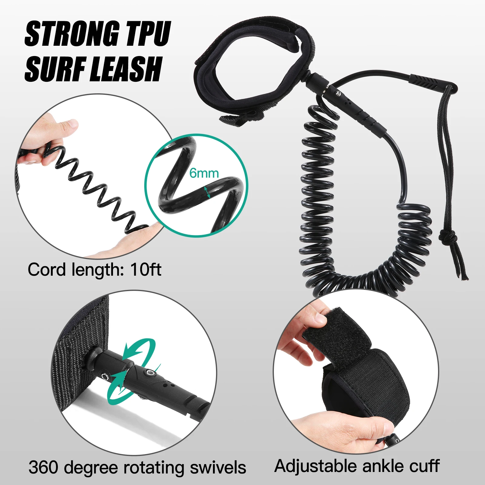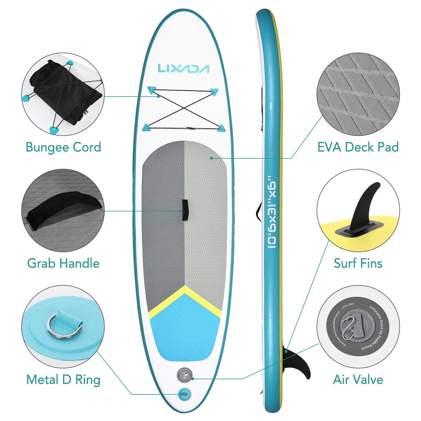 Das rutschfeste EVA-Deckpolster bietet eine weiche Polsterung für Ihre Stürze, wenn ein Ausrutschen auftreten.Haltegriffe und aufgerollte Surfleine für zusätzliche Sicherheit.