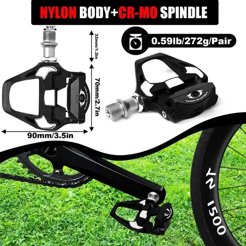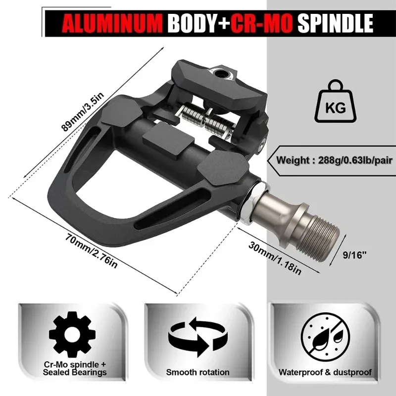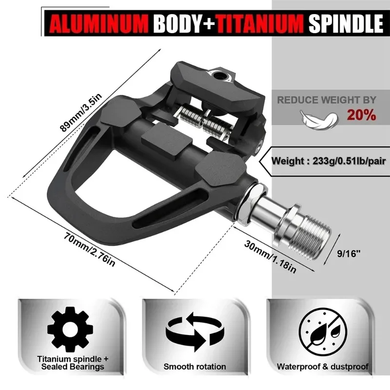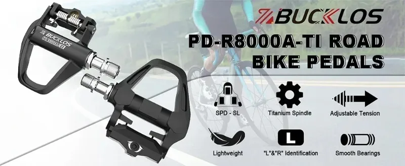 BUCKLOS Rennradpedale für SPD-SL Titanspindel Fahrrad Selbstsicherndes Pedal mit Stollen Fahrradrennenpedale Fahrradteil