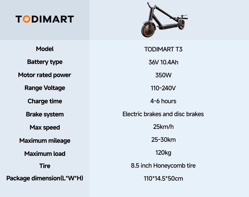 Erwachsener TODIMART T3 Elektroroller 350W Motor leistungsstarke 36V 10,4AH 20-30KM leichte APP
