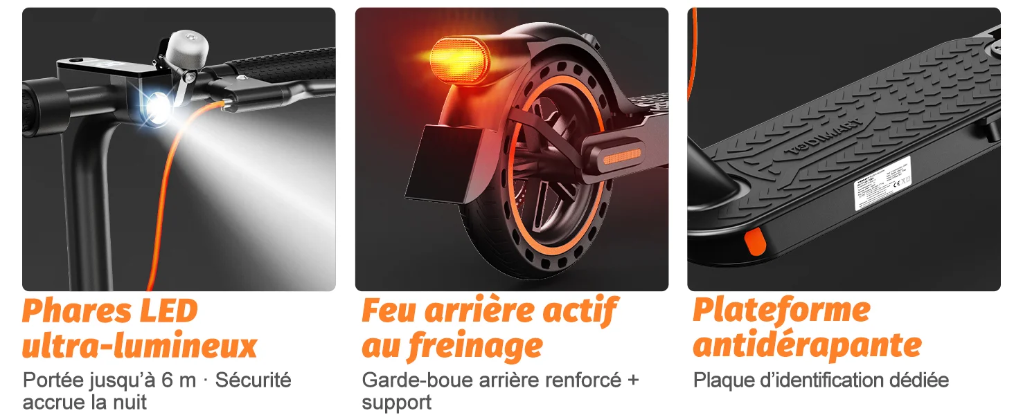 ⚡【SICHERHEIT & KONFORT】 Das Modell ist mit einem 8,5-Zoll-Vollreifen ausgestattet.Vollreifen haben beim Start einen geringen Widerstand und es besteht keine Gefahr von Luftlecks oder Platzen.Mehr Sicherheit, Haltbarkeit und Widerstandsfähigkeit gegen Perforation.Da der Elektroroller mit hervorragenden mechanischen Scheibenbremsen ausgestattet ist, bietet Ihnen ein recht reibungsloses und komfortables Fahrerlebnis.LED-Leuchten und Bremslichter hinten sorgen für zusätzliche Sicherheit beim Fahren mit Anhängern bei Nacht.