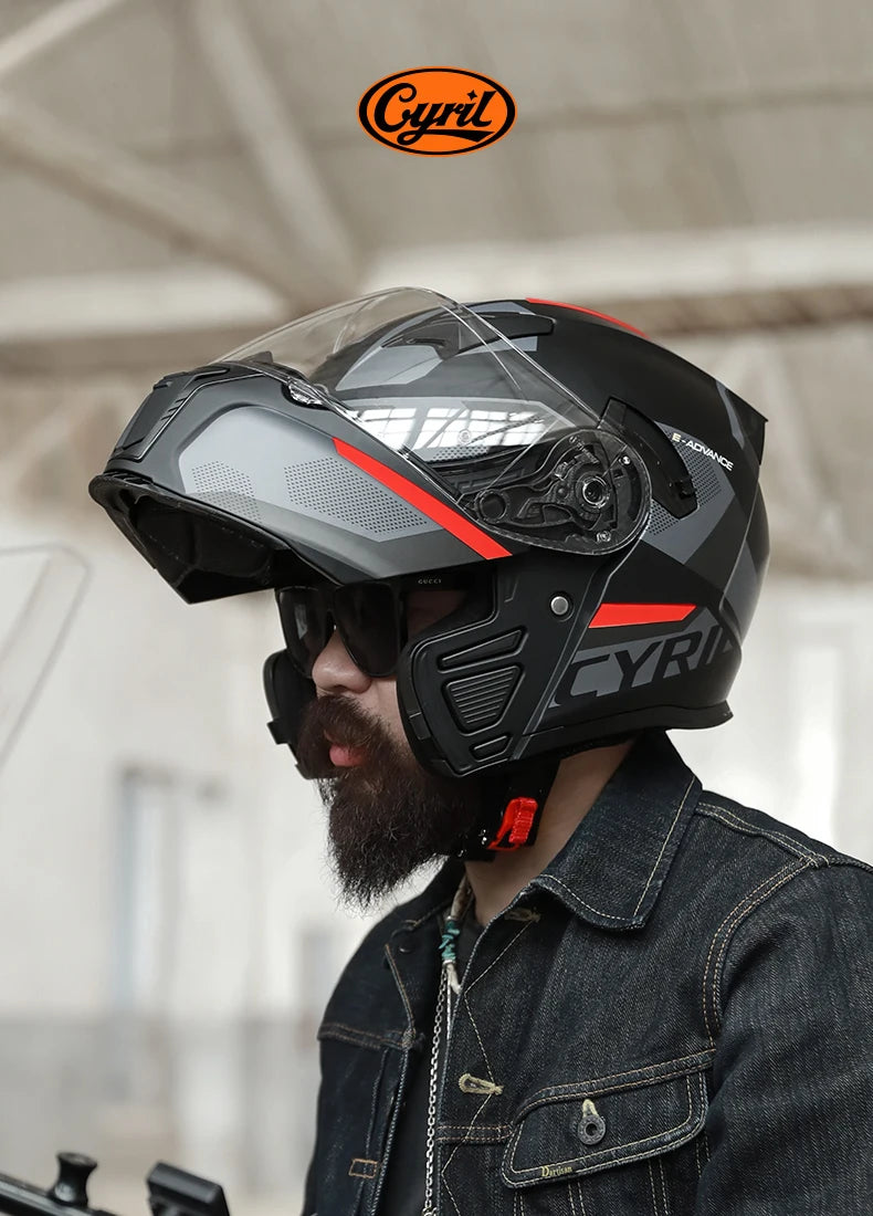 Integraler Motorradhelm mit Dual-Visier, Cyril hochklappbarer Motorradhelm mit Bluetooth-Steckplatz für Erwachsene, DOT-zugelassener Helm