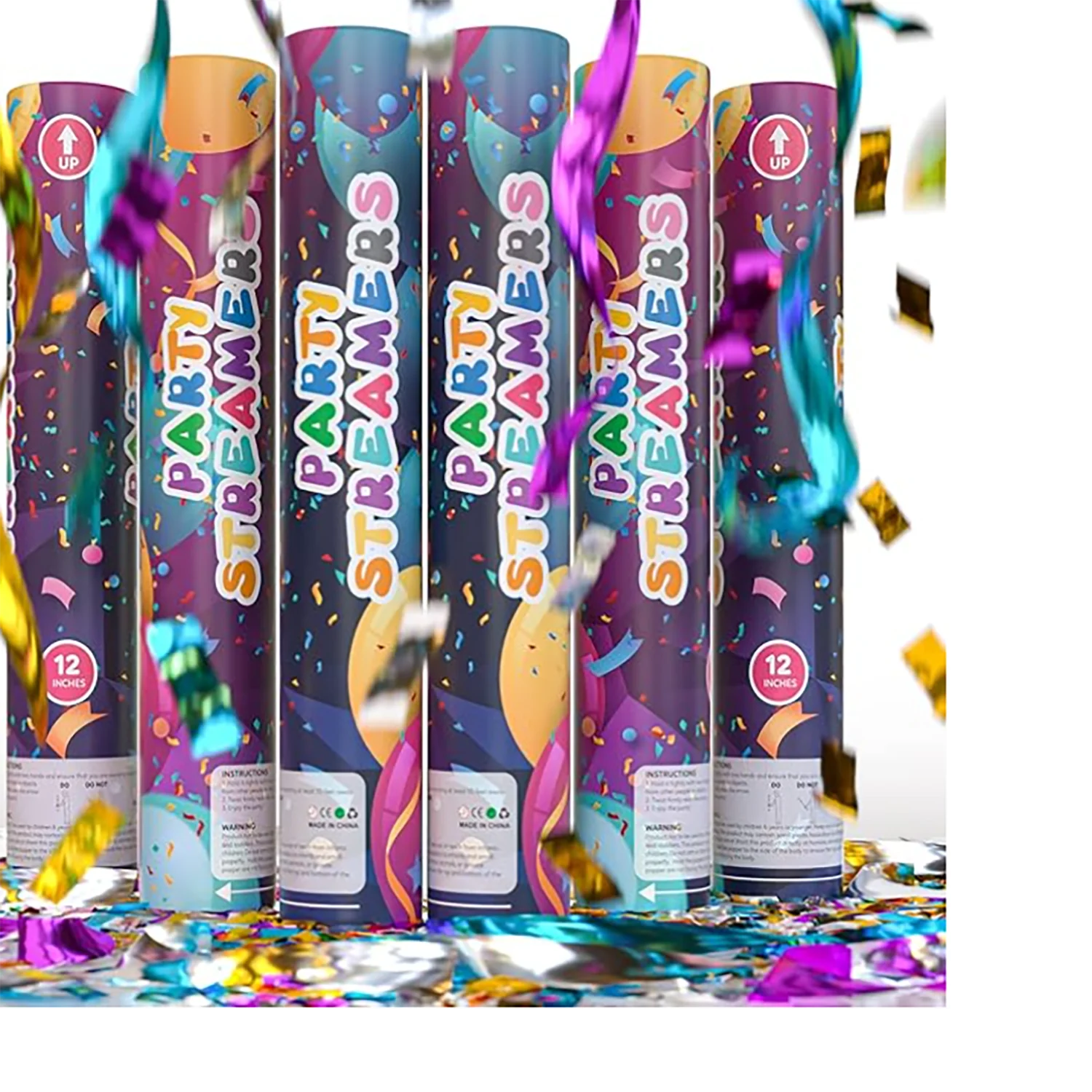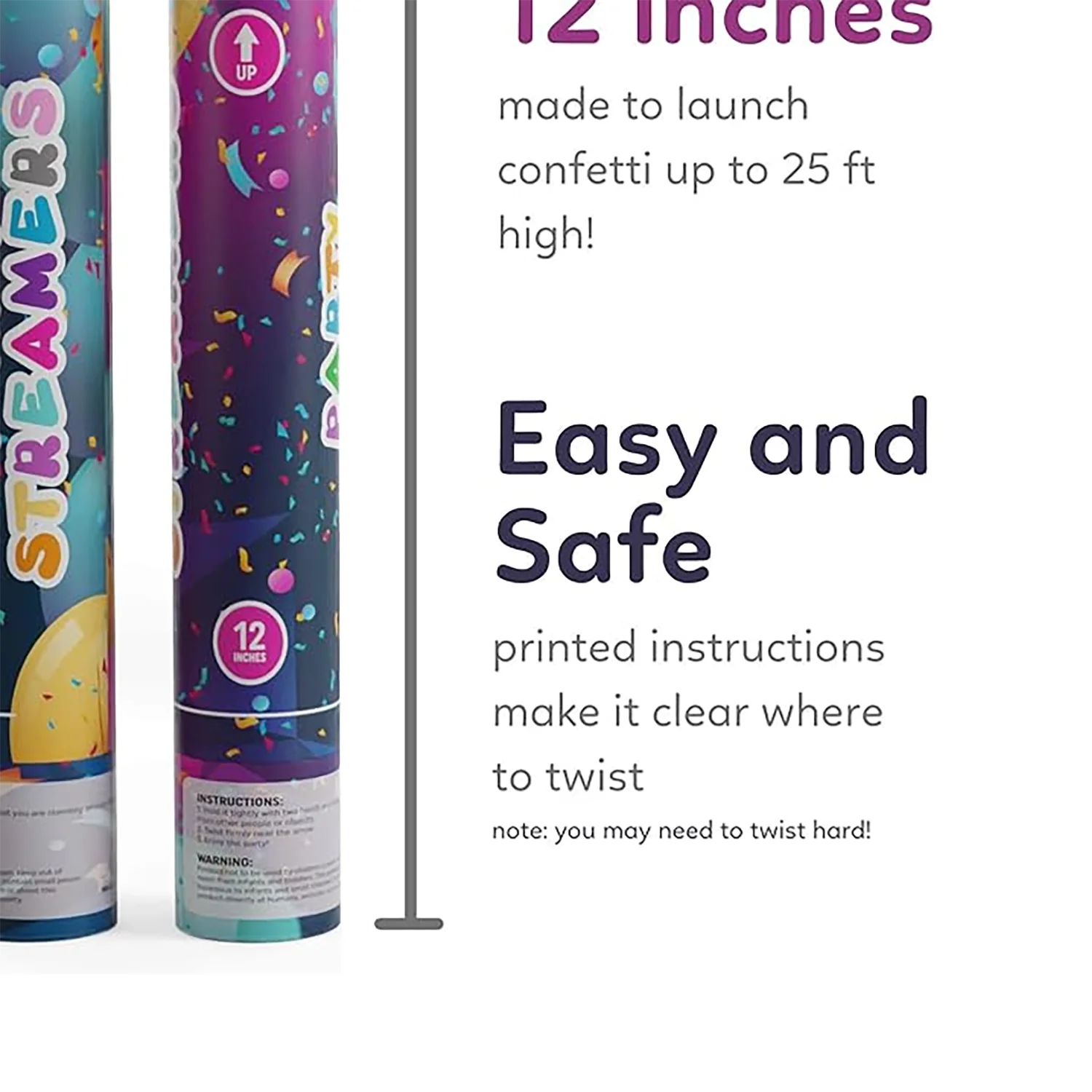 Konfetti-Kanone, 30,5 cm, mehrfarbig, Konfetti-Popper, Party-Streamer, biologisch abbaubar, 12 Stück, Party-Popper-Streamer-Shooter für Hochzeiten