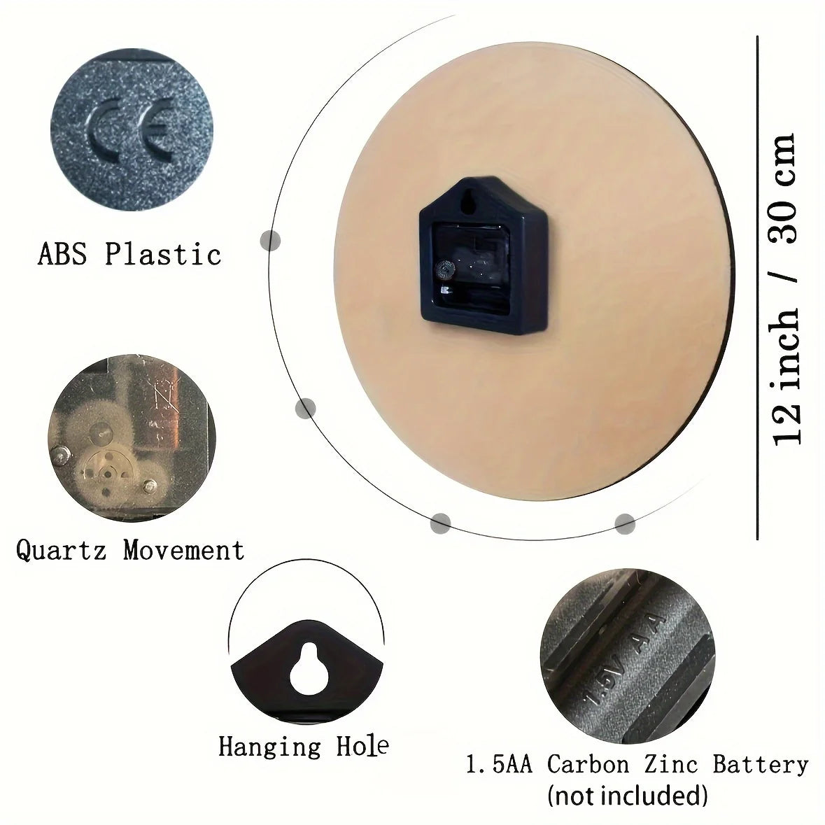 Nicht tickende Holz-Wanduhr – geräuschloser Betrieb, Weihnachtsdorf-Szene mit Schneemann, roter Tür und Schneeflocken – batteriebetrieben