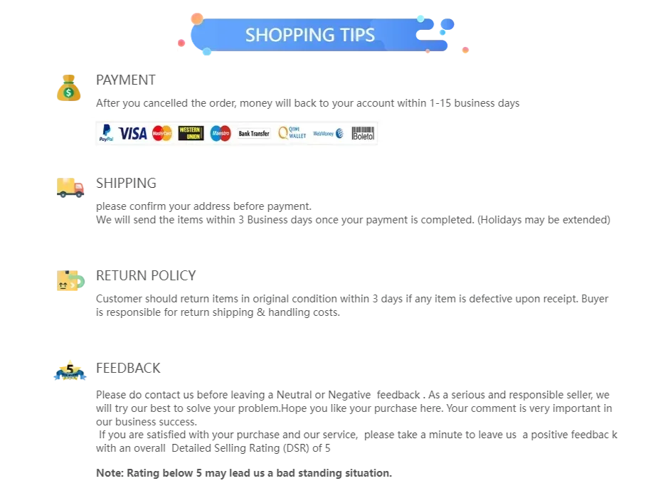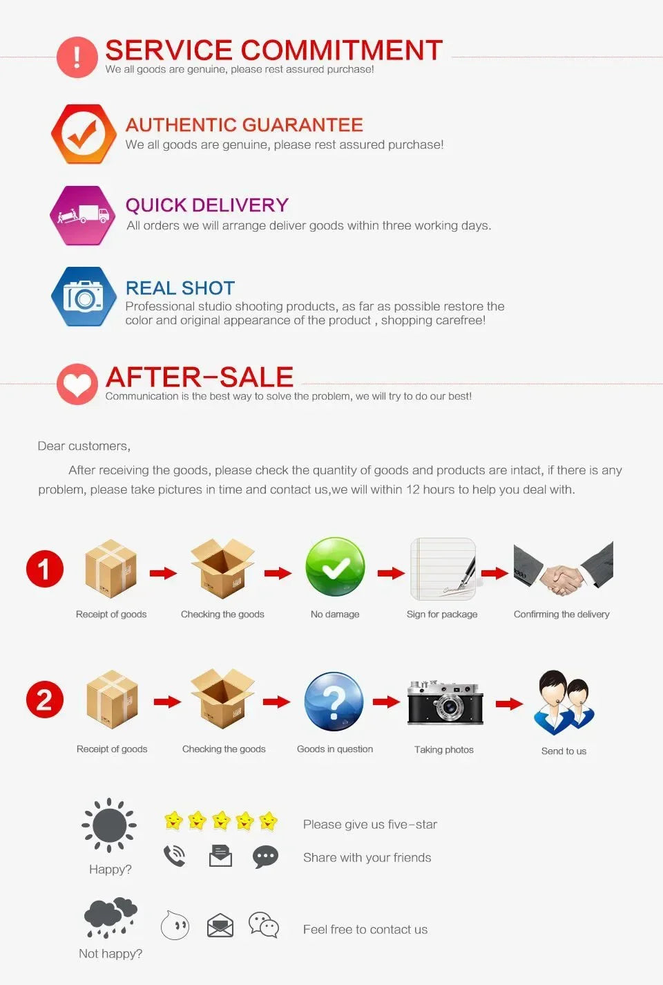 Bitte hinterlassen Sie eine Nachricht, bevor Sie eine schlechte Bewertung abgeben, wenn bei den Produkten Probleme auftreten.