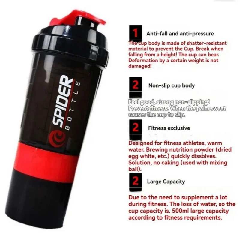 3 Schichten Design dieser Shaker-Flasche ermöglicht ein effizientes Mischen von