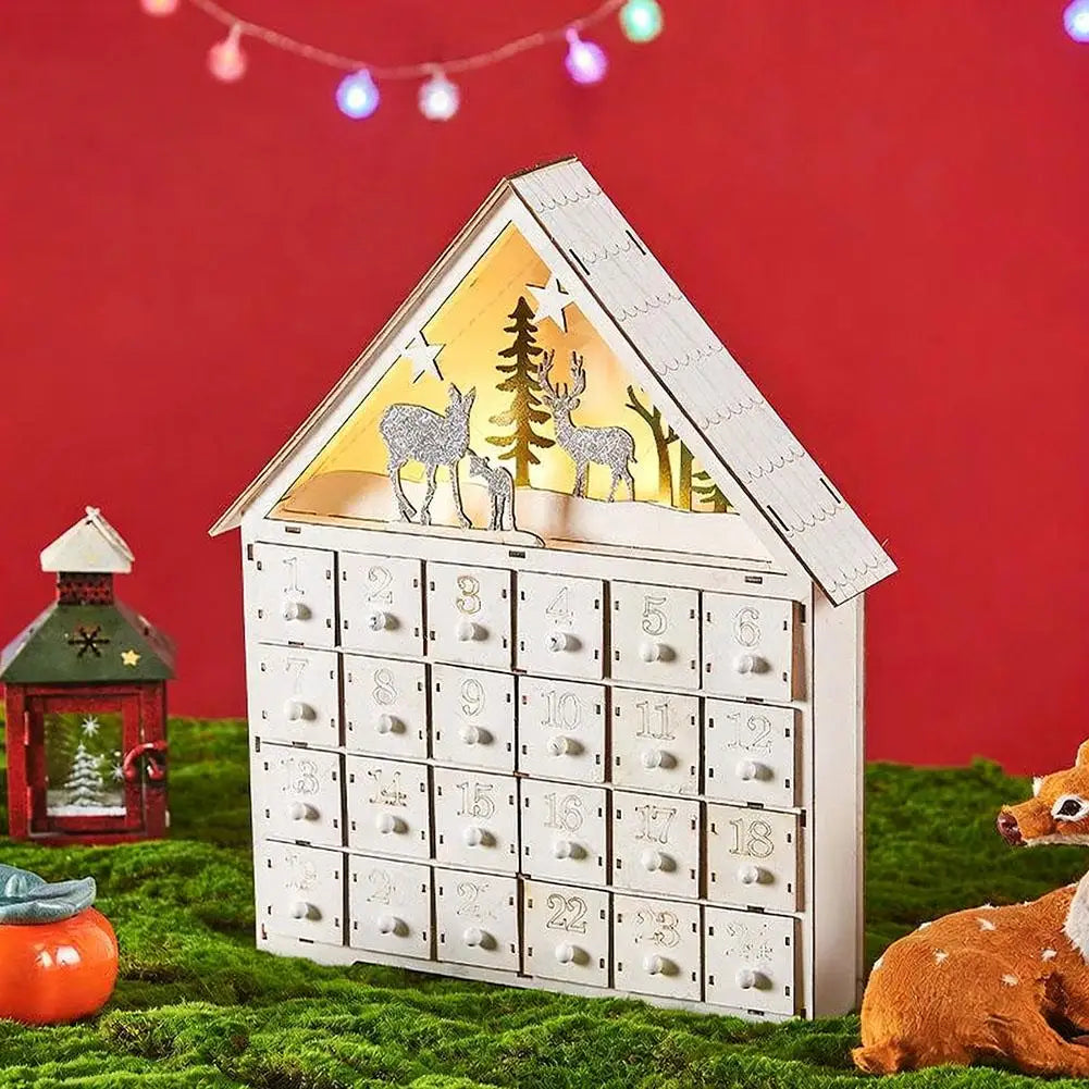 Weihnachts-Adventskalenderhaus aus Holz mit 24 Schubladen, Countdown zu Weihnachten für Kinder, LED-Heimdekoration, klein/groß