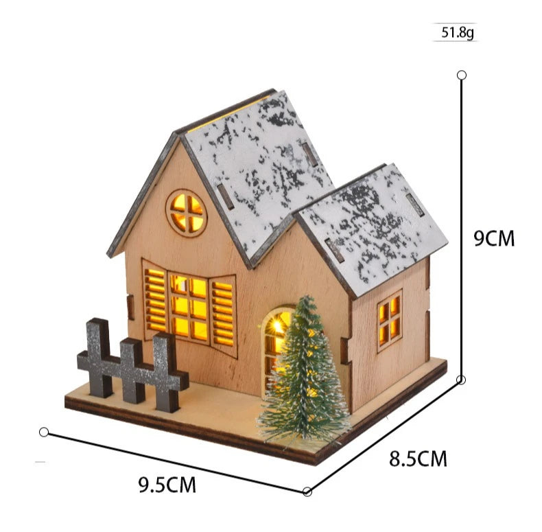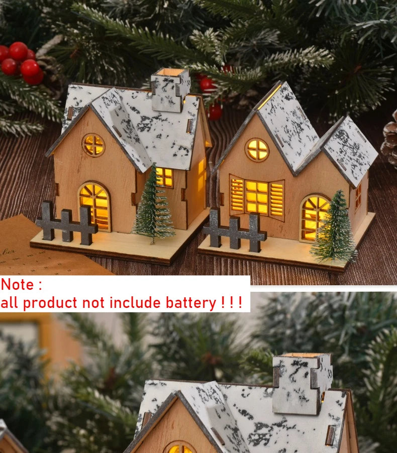 Weihnachts-Holzhaus, leuchtende Hütte für frohe Weihnachten, LED-Licht, Zuhause, DIY, Weihnachtsbaumschmuck, Kindergeschenke, 2026 Neujahr
