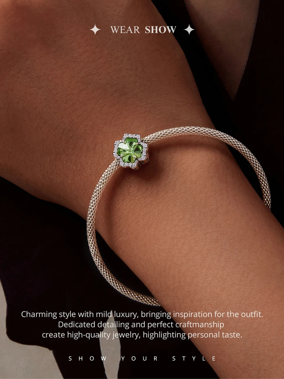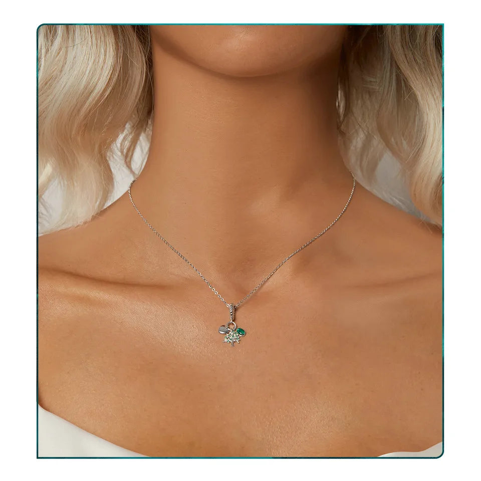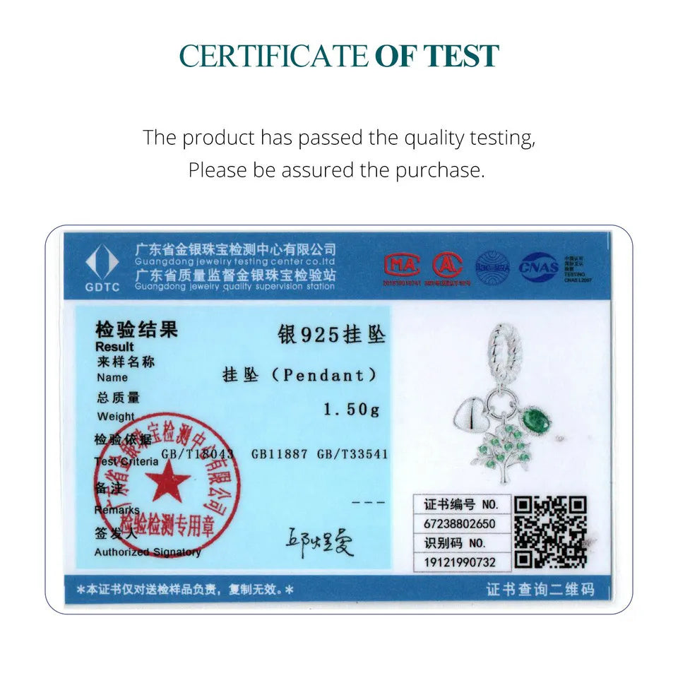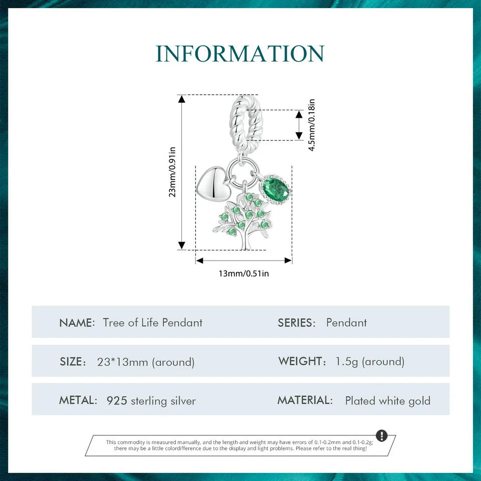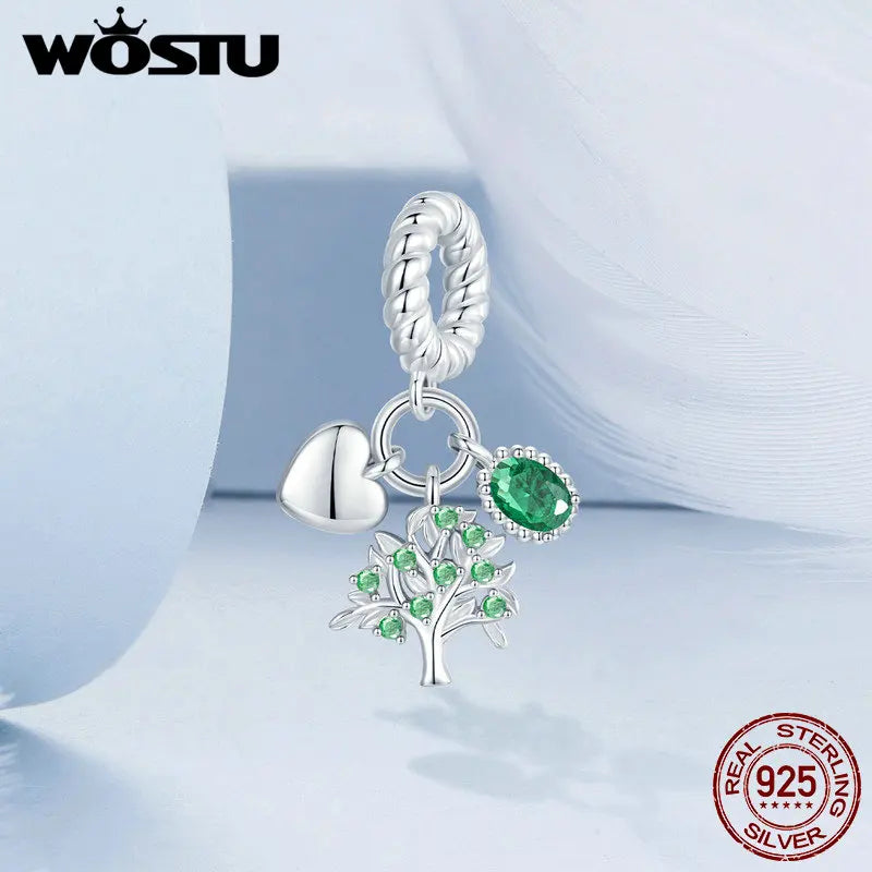 WOSTU Charms-Anhänger aus 925er-Sterlingsilber, grüner Baum des Lebens, Glücksklee-Perlen, passend für Original-Armbänder, Halsketten, DIY-Schmuck, Geschenk